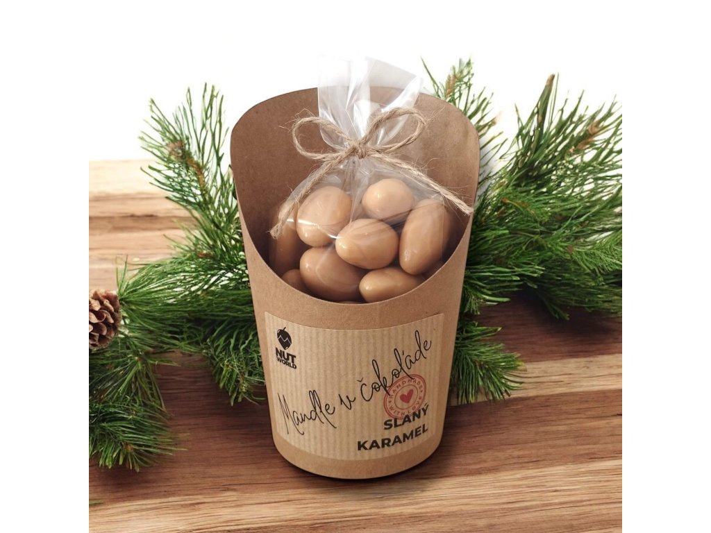 - Zloženie: Cukor 31,83%, MANDĽOVÉ jadrá 30%, sušené plnotučné mlieko, karamelový prášok (sušené odstredené mlieko, sušená srvátka (MLIEKO), cukor, mliečny tuk, prírodná vanilková aróma), kakaová hmota, morská soľ, leštiaca látka (E904, E414), emulgátor (E322) slnečnicový lecitín, prírodná aróma, repkový olej, kokosový olej, soľ, glukózový sirup, dextrín.