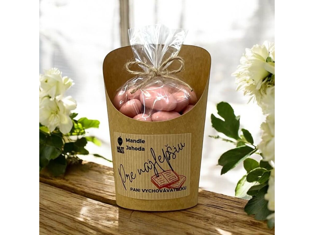 Mandle v jahodovom jogurte v celofáne a tégliku 180g -PRE PANI VYCHOVÁVATEĽKU