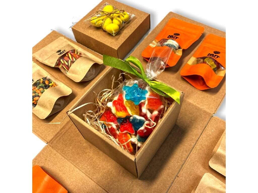 50g Medvídci bez cukru: Sladidlo (maltitol sirup*, stévie), voda, želatina, kyselina citronová E330, aroma, bezový koncentrát, koncentrát spiruliny a safloru, barvivo (E100, E160c), rostlinné oleje (palmový, kokosový), želírovací činidlo (včelí a karnaubský vosk)