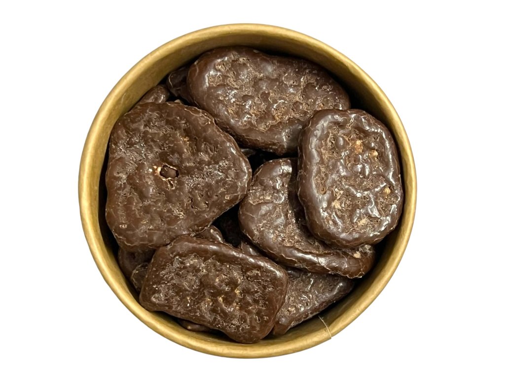 Složení: BANÁN sušený 23%(oxid siřičitý a siřičitany E220 0,01%), poleva z hořké čokolády 57,5% (cukr, kakaová hmota, pšeničná mouka, rýžová mouka, rostlinný tuk palmový, kakaové máslo, SYROVÁTKA z MLÉKA, slunečnicový lecitin E322, arabská guma, šelak E904, obsah kakaa v sušině min.35%)
