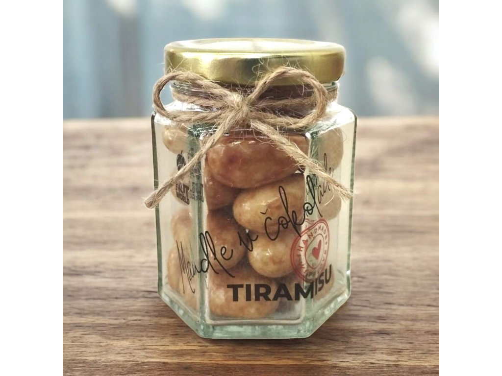 Složení: MANDLE 31%, tiramisu poleva 69% (cukr, rostlinný olej palmový, SYROVÁTKA (MLÉKO),rýžovámouka, slunečnicový lecitin, arabská guma, šelak, příchuť tiramisu, kakaová hmota, kakaové máslo).