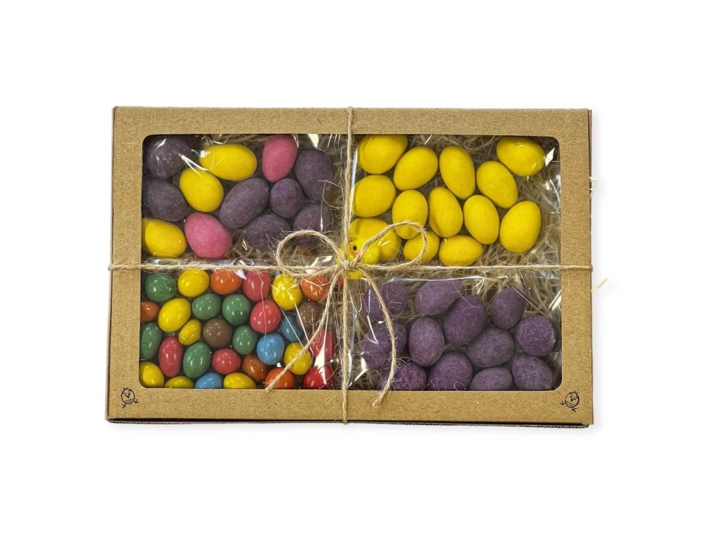 Darčeková krabička VEĽKONOČNÁ 4X 80g priehľadná