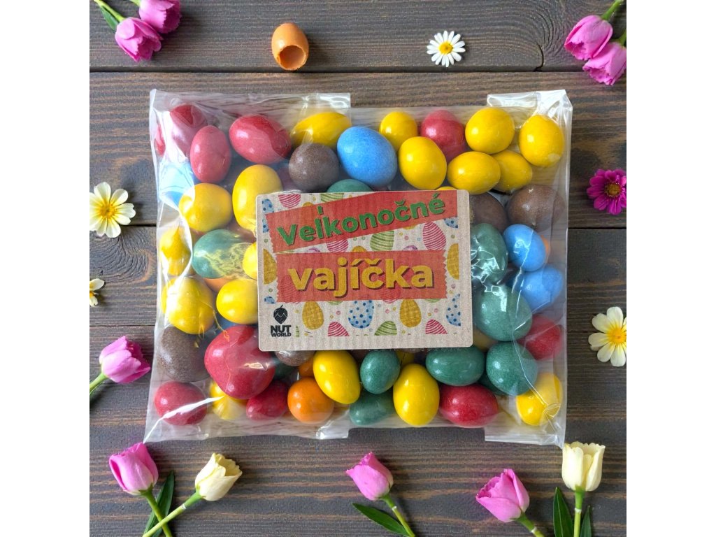 Čokoládové veľkonočné vajíčka s arašidmi v celofáne so zajačikom 200g