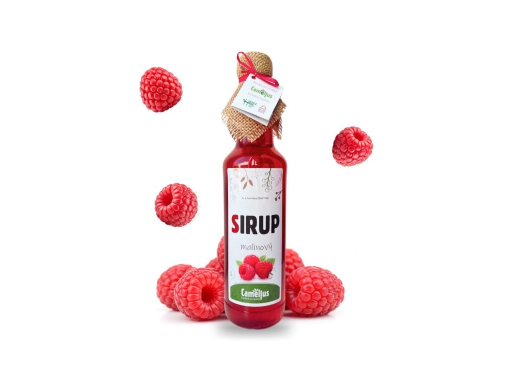 Zloženie: cukor, ovocno-bylinný extrakt 48 % (voda, malina 4,5 %, regulátor kyslosti: kyselina citrónová, maliník list 1,8 %).